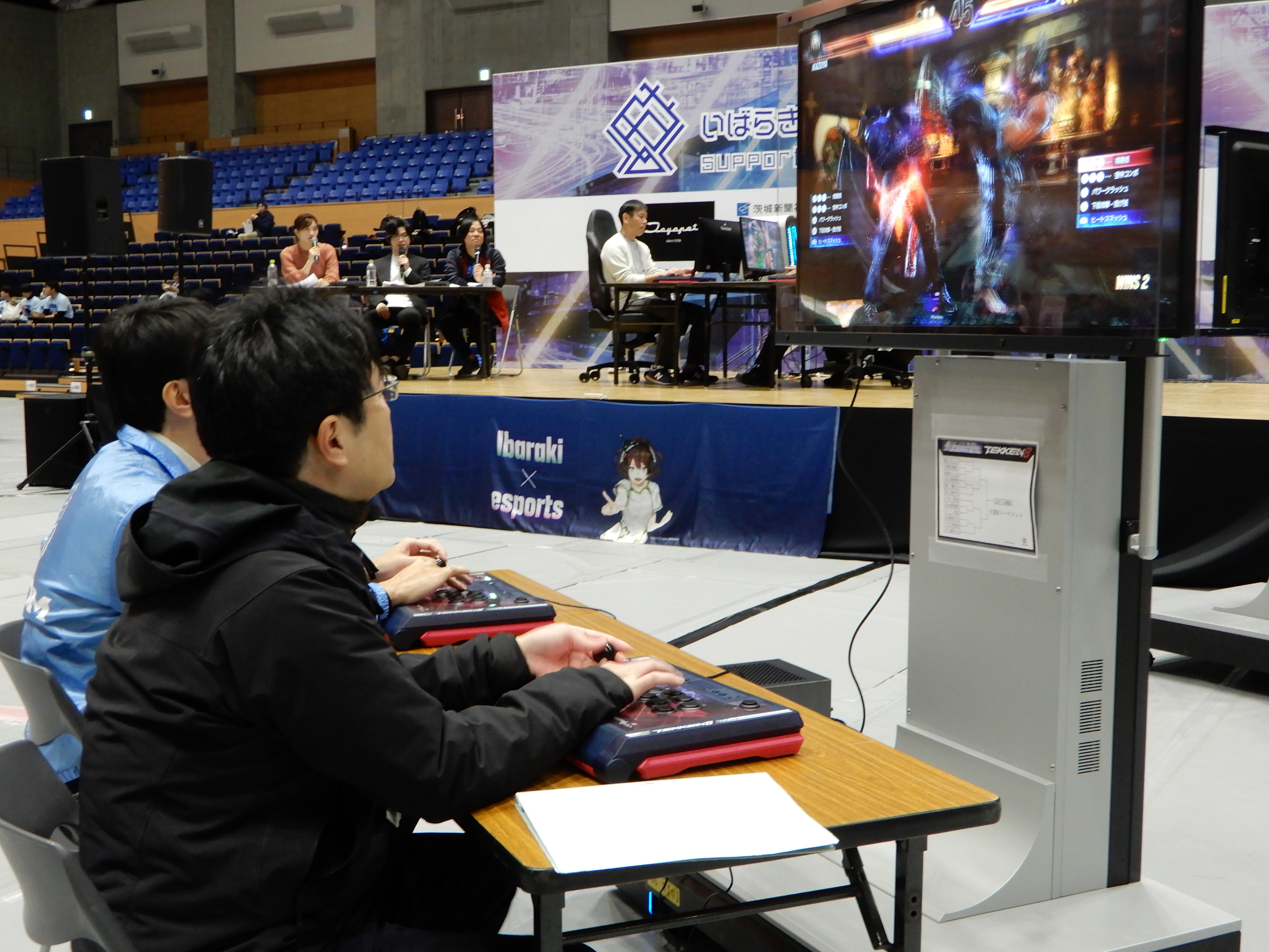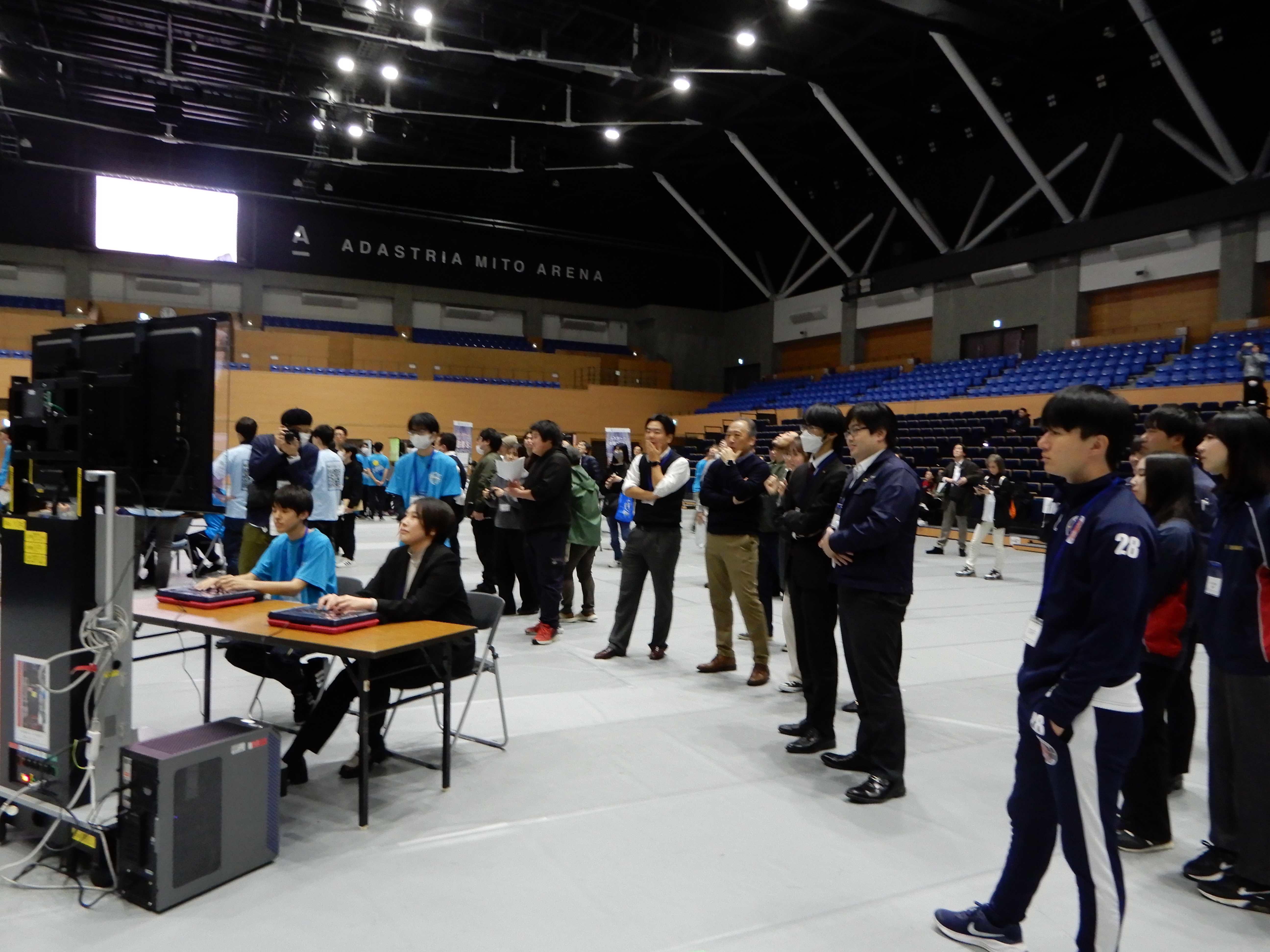 天井から吊るされた大型ビジョンに白熱した戦いが投影されると、会場は大いに盛り上がりました。