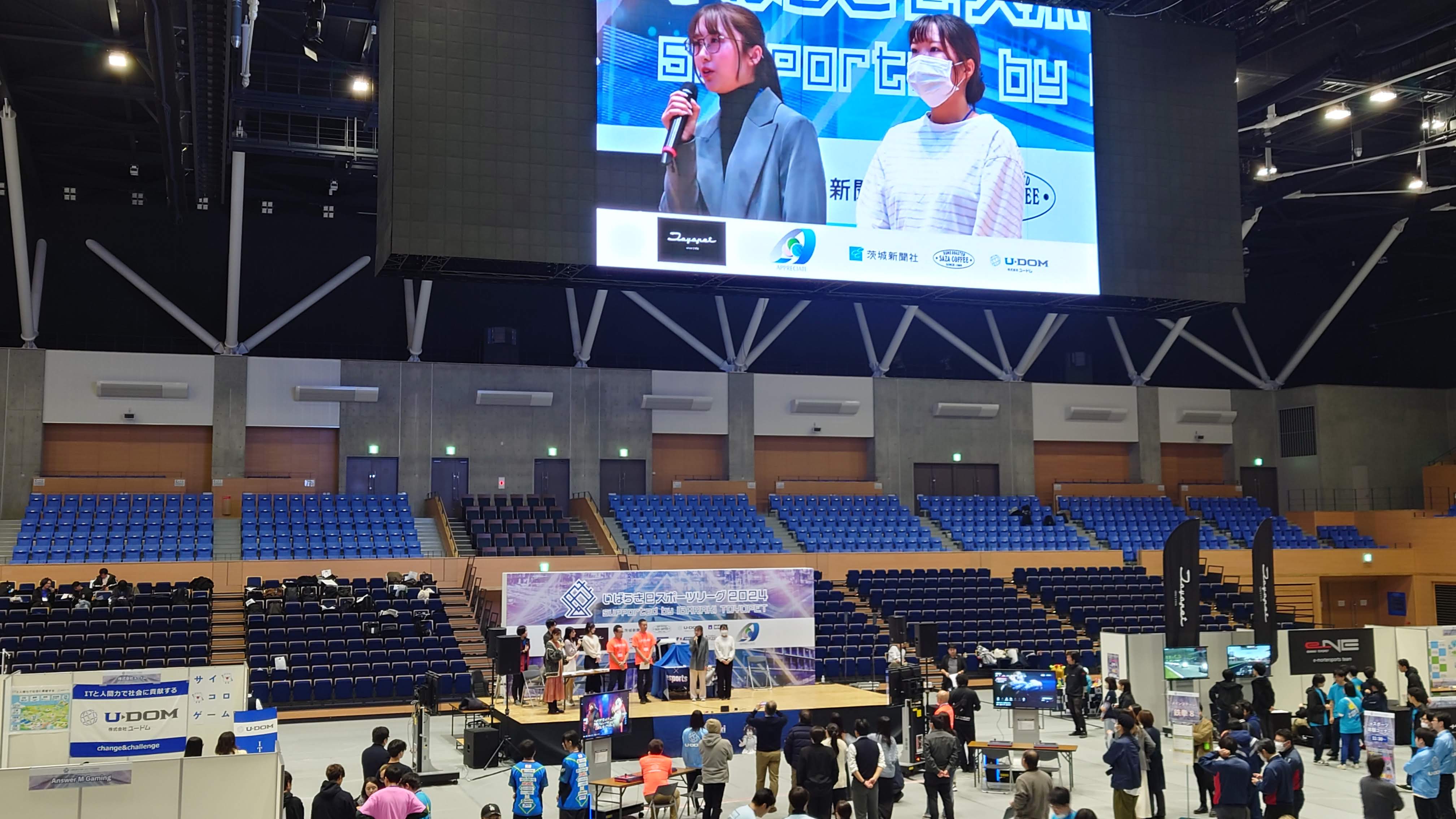 天井から吊るされた大型ビジョンに白熱した戦いが投影されると、会場は大いに盛り上がりました。